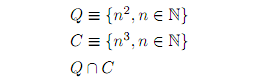 \Tdefine{Q}{\{ n ^ 2 , n \in \mathbb{N} \}}